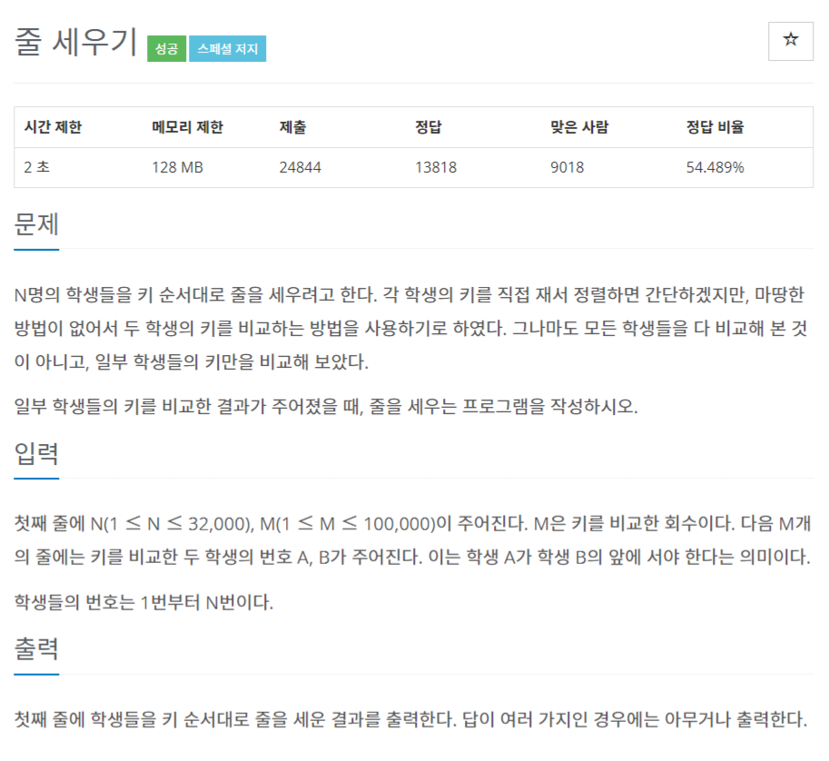 링크 : https://www.acmicpc.net/problem/2252